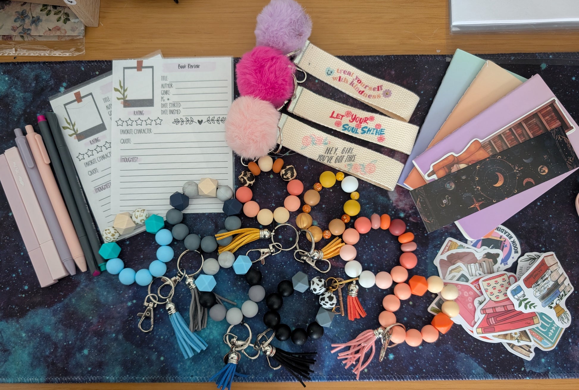 Perfect for readers who love to savor every page! This charming bundle includes everything but the book—featuring a thoughtful book review to inspire your next read, a stylish marker, pen, and highlighter, a pocket-sized journal for notes or reflections, two beautiful bookmarks, a cute keychain, and a handful of fun bookish stickers. Whether you're annotating, journaling, or just vibing in your reading nook, this set is made to elevate your literary moments.